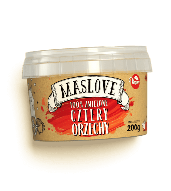 Cashew 25%, geröstete Haselnüsse 25%, geröstete Mandeln 25%, geröstete Erdnuss 25%