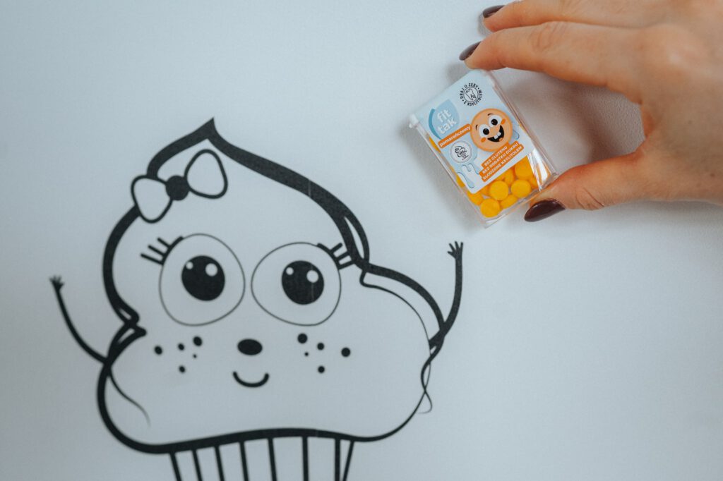 Xylit (97%); Säureregulator: Apfelsäure (2,5%), natürliches Orangenaroma, Farbstoffe Beta-Carotin, Curcumin