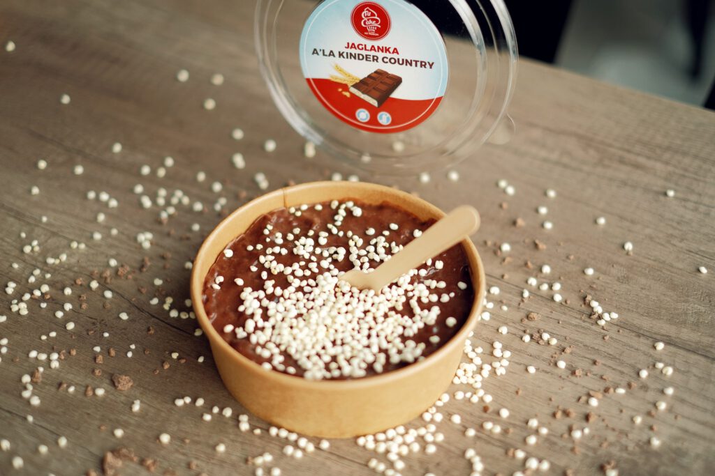 Extras: FIT ICE CREAM Eiscreme, Kokosmilch, Obst der Saison, Erythrol, Hafermehl (handgemacht)*.
