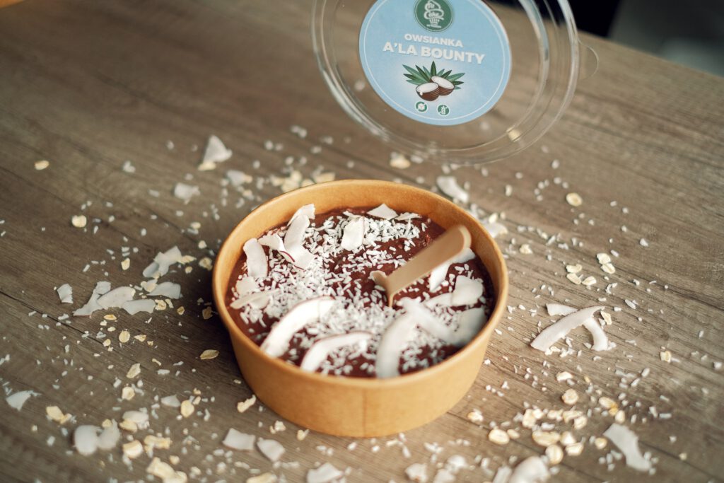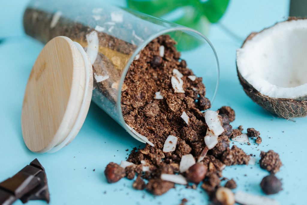 Kokosmilch, Haferflocken, veganer Protein-Conditioner*, Kokosraspeln, glutenfreier Pudding, Kakao, Johannisbrot, Dattelsirup, Erythrol, Agar, Himalayasalz.