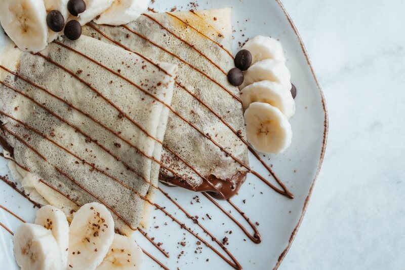Eier, nutella*Pflanzenmilch (nach Wahl aus dem Angebot des Hauses), Banane, glutenfreier Pudding, Süßstoff: Erythrol.