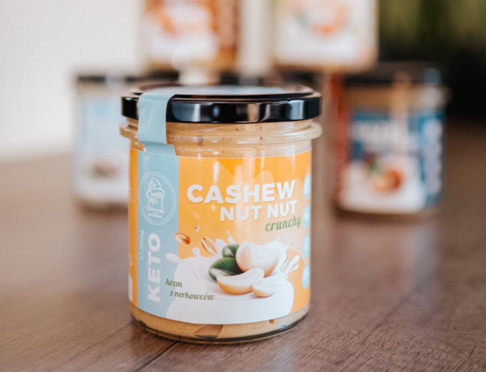 Cashewnüsse geröstet (51%), Erdnüsse geröstet, Süßstoff: Erythrit; Sheaöl, Kokosnussöl, Sonnenblumenöl, Milch entrahmtes Pulver, Molke Pulver, Sonnenblumenlecithin